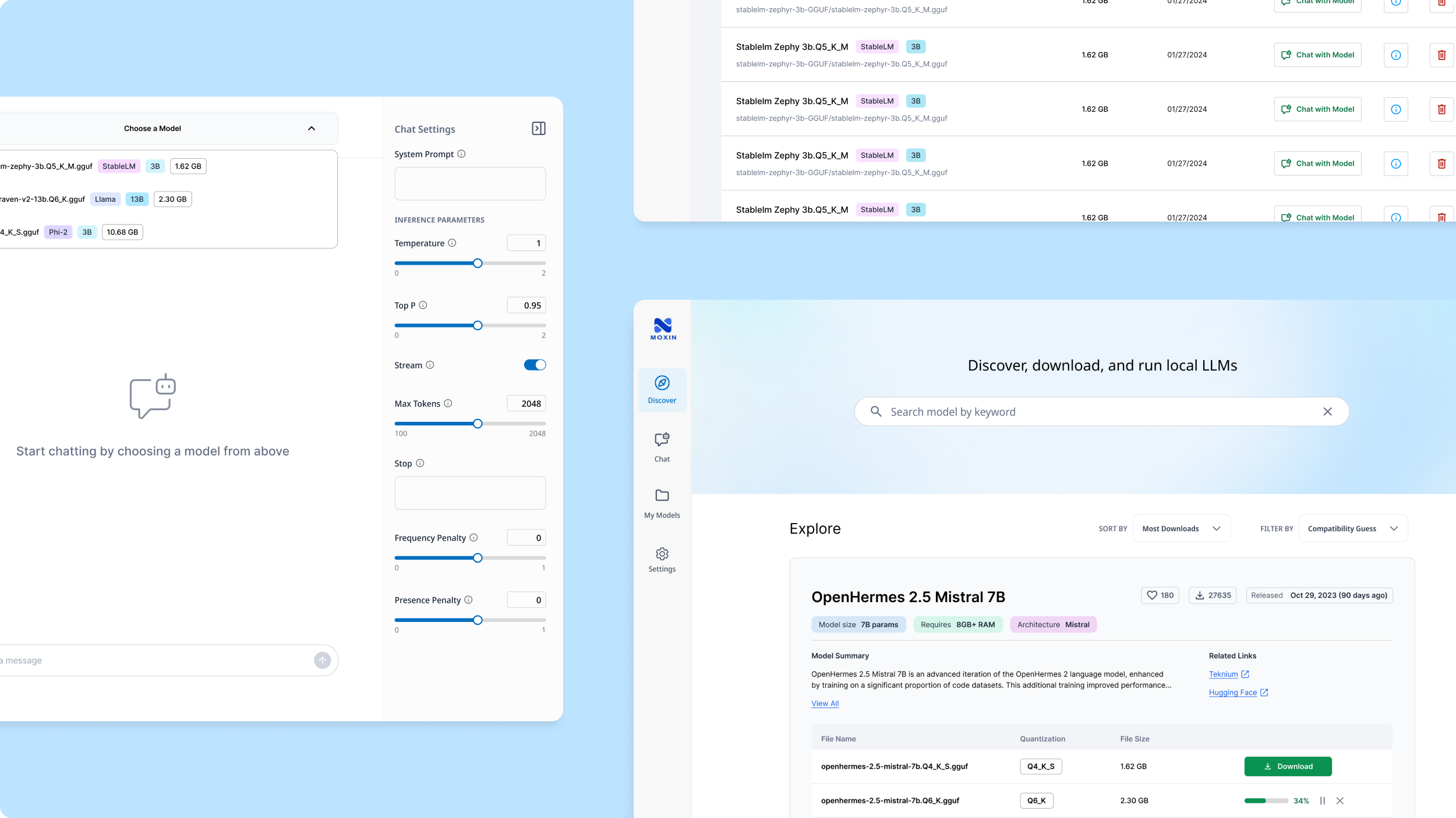 Explore, download, and run open-source Large Language Models locally