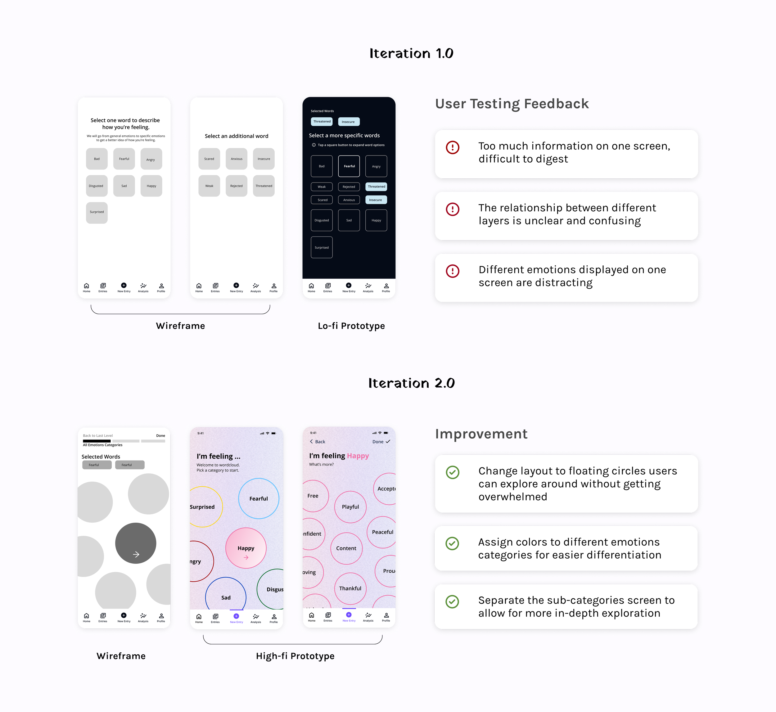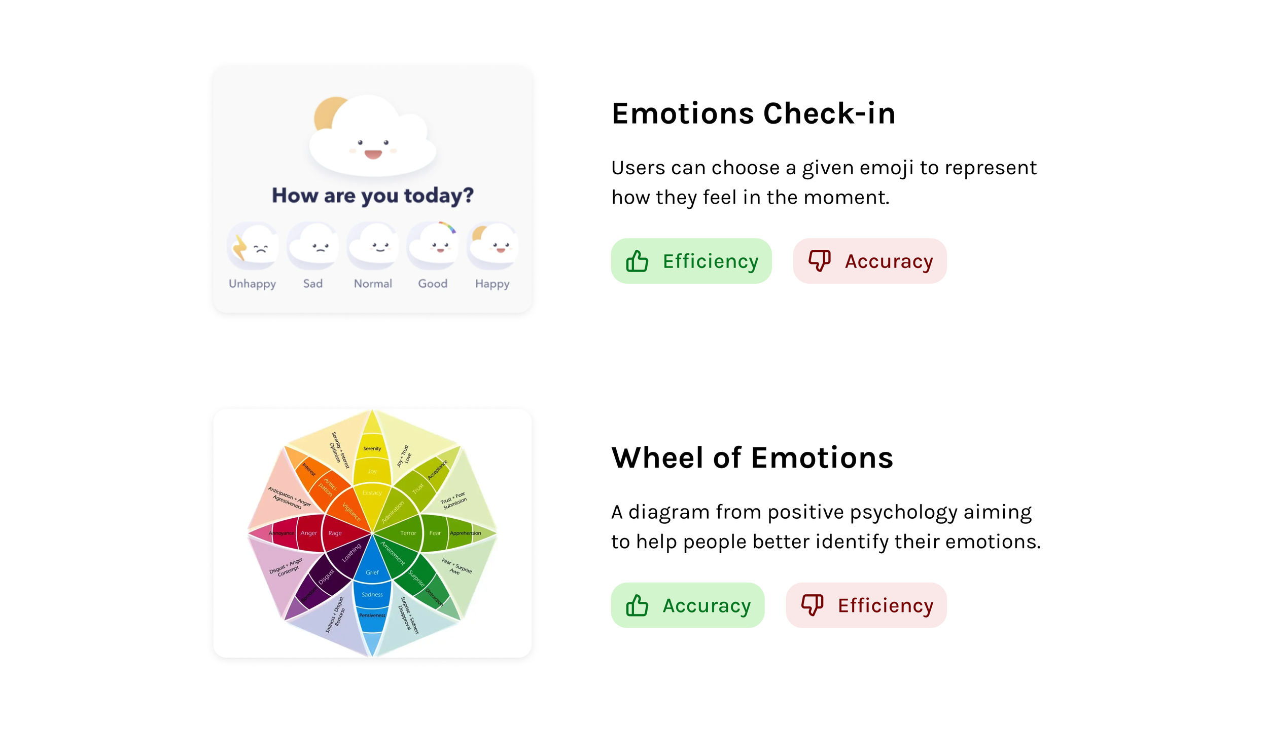 One important thing that we learned during user research is that people have diverse preferences for journaling emotions.