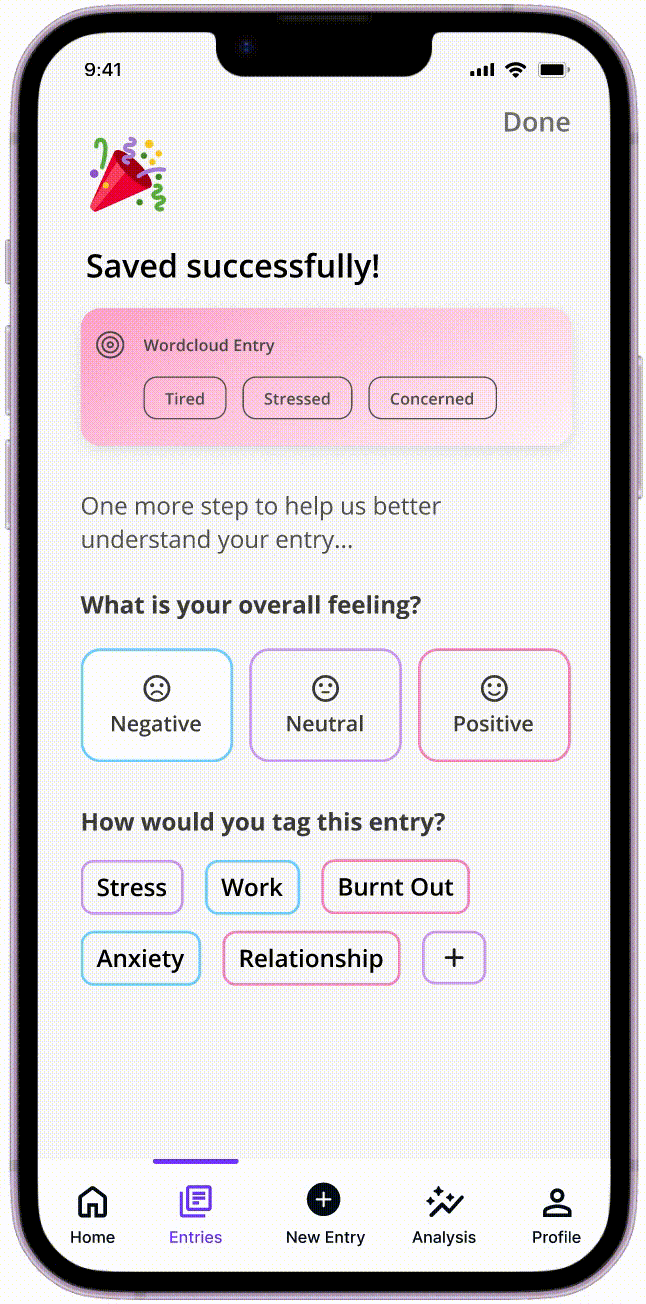 During user testing, we found that individuals have diverse preferences for personal journaling. Rather than aiming for a right or wrong solution, we focused on accommodating different needs and ensuring that each user could find a way that best fit them.