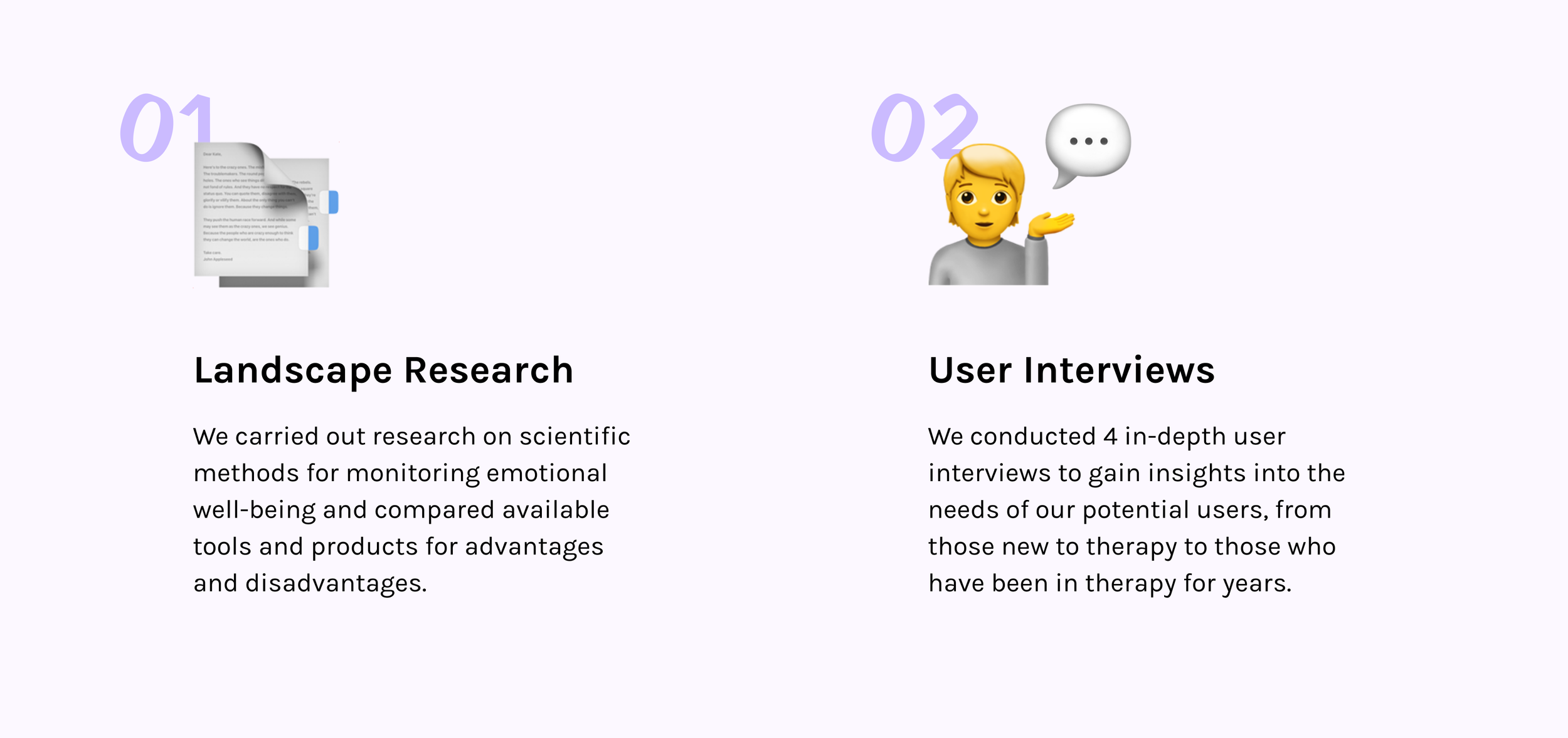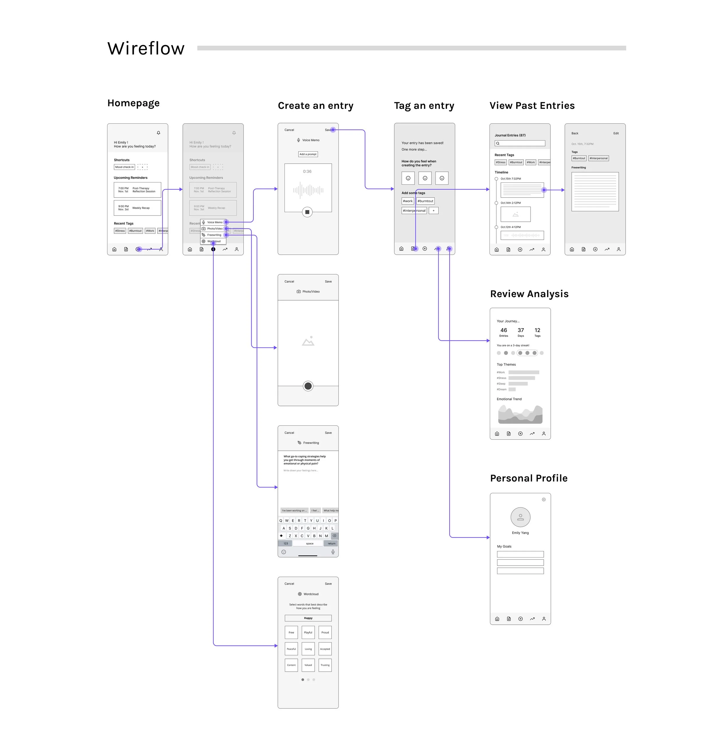 We mapped out potential ways of journaling emotions based on different user needs and ensured there are solutions covering all spectrums.
