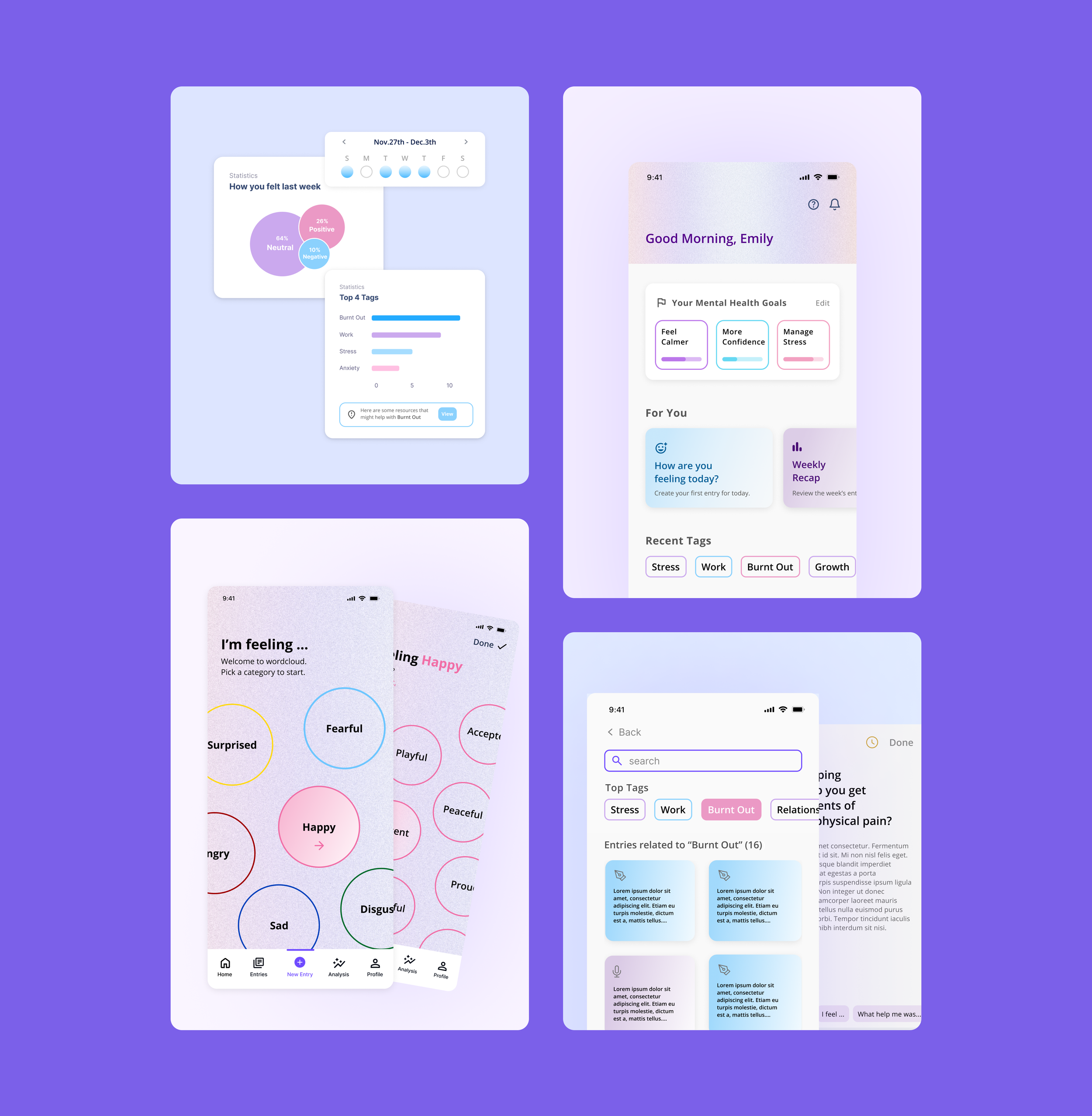 Identifying one’s feelings can be challenging. Interactive word cloud helps users capture their feelings intuitively and accurately.